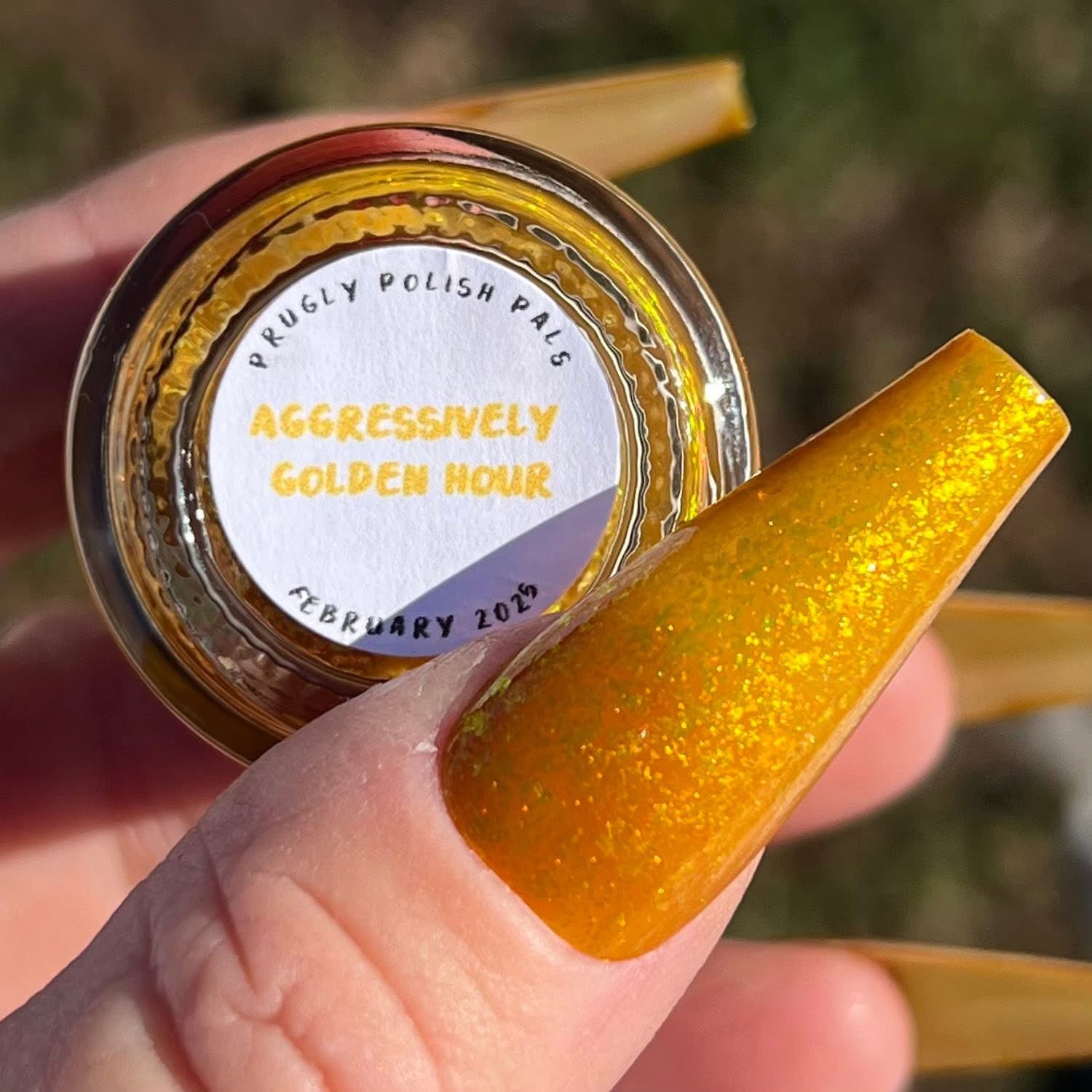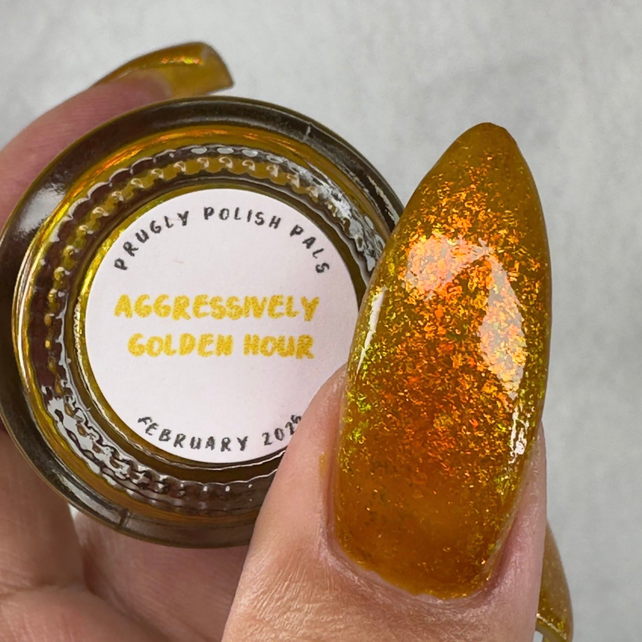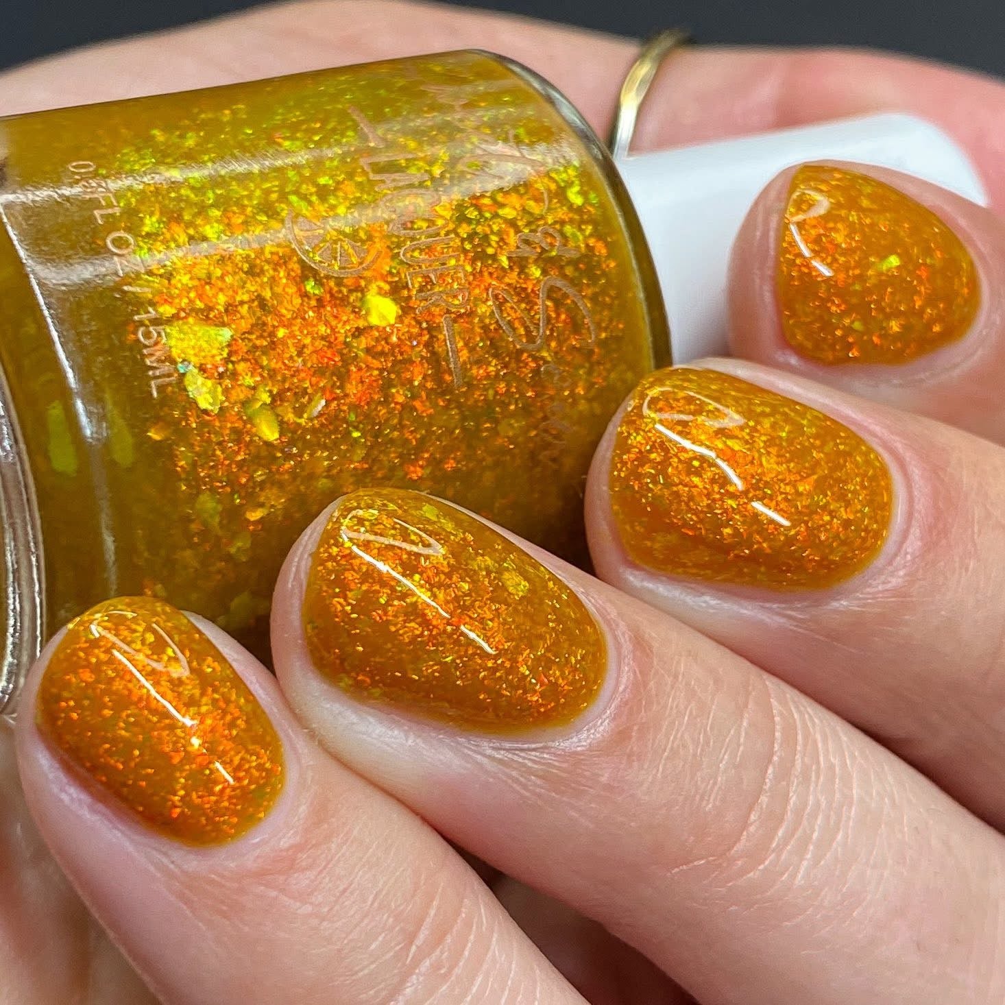 Group custom for Prugly Polish Pals - golden orange jelly with orange/gold/green iridescent flakes -- Join group for discount code! https://www.facebook.com/groups/1879251045863637