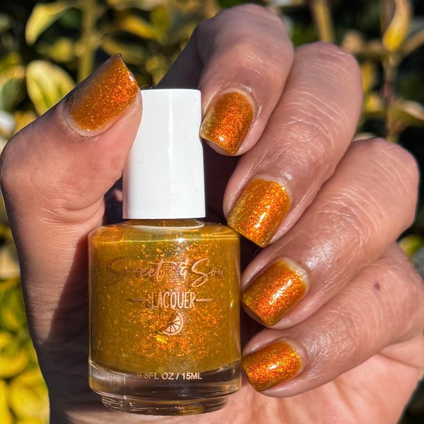 DISCLAIMER: DUE TO VARIATIONS OF SCREEN RESOLUTIONS INCLUDING, BUT NOT LIMITED TO: COLORS AND BRIGHTNESS ON COMPUTERS AND MOBILE DEVICES, THE ACTUAL COLOR OF THE POLISH MAY BE SLIGHTLY DIFFERENT THAN WHAT YOU SEE. SWEET & SOUR LACQUER POLISHES ARE CREATED IN SMALL BATCHES. EACH INDIVIDUAL BATCH MAY VARY SLIGHTLY.