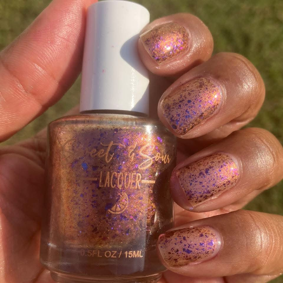 DISCLAIMER: DUE TO VARIATIONS OF SCREEN RESOLUTIONS INCLUDING, BUT NOT LIMITED TO: COLORS AND BRIGHTNESS ON COMPUTERS AND MOBILE DEVICES, THE ACTUAL COLOR OF THE POLISH MAY BE SLIGHTLY DIFFERENT THAN WHAT YOU SEE. SWEET & SOUR LACQUER POLISHES ARE CREATED IN SMALL BATCHES. EACH INDIVIDUAL BATCH MAY VARY SLIGHTLY.